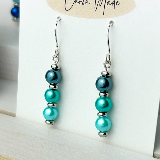 Glass pearl dangle earrings teal and turquoise