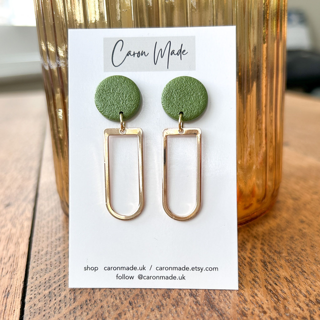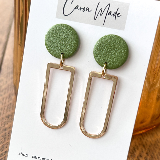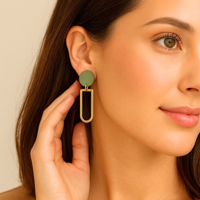 Bright Blue Dangle Earrings with Brass Leaf Charm