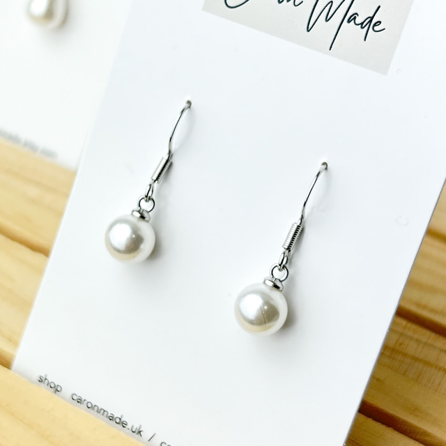 Round glass pearls with sterling silver hallmarked hooks