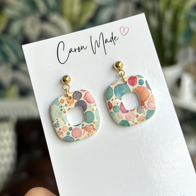 Droplet pattern rounded square earrings