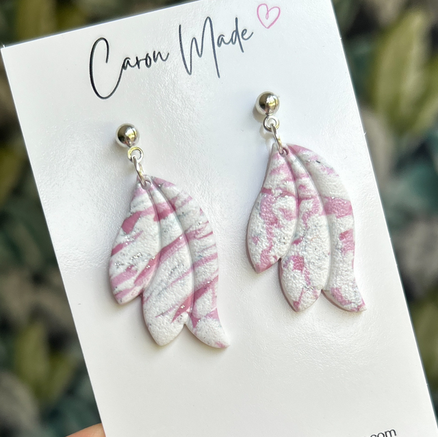 Pink and white pretty floral shape earrings